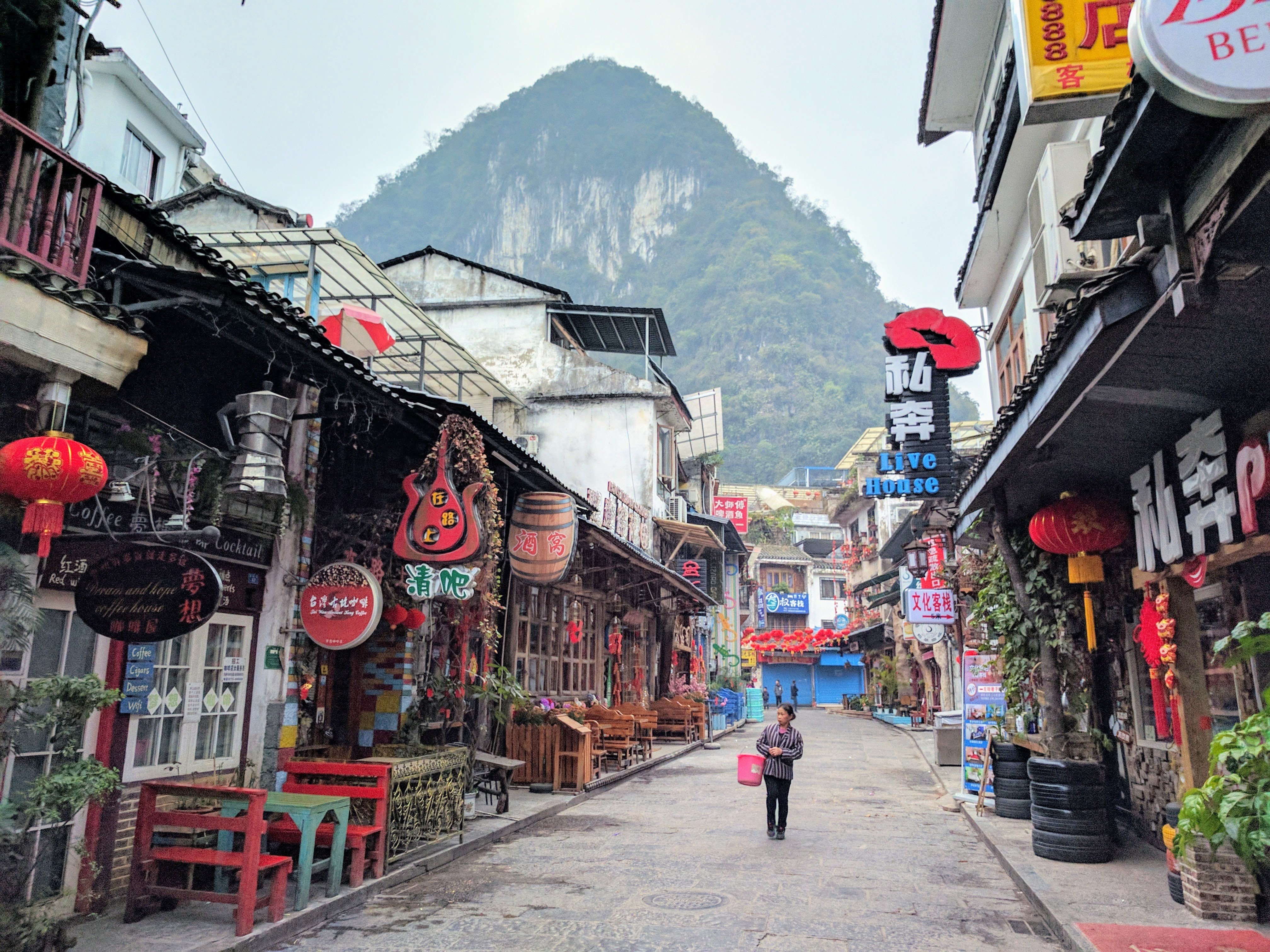 From an ultra-low-budget rock climbing trip to China I did with a friend. Yangshuo is an adorable (albiet touristy) little town. The main attraction is the surrounding karst pillars/hills. We didn’t actually climb that much. I remember the town more than the climbing.