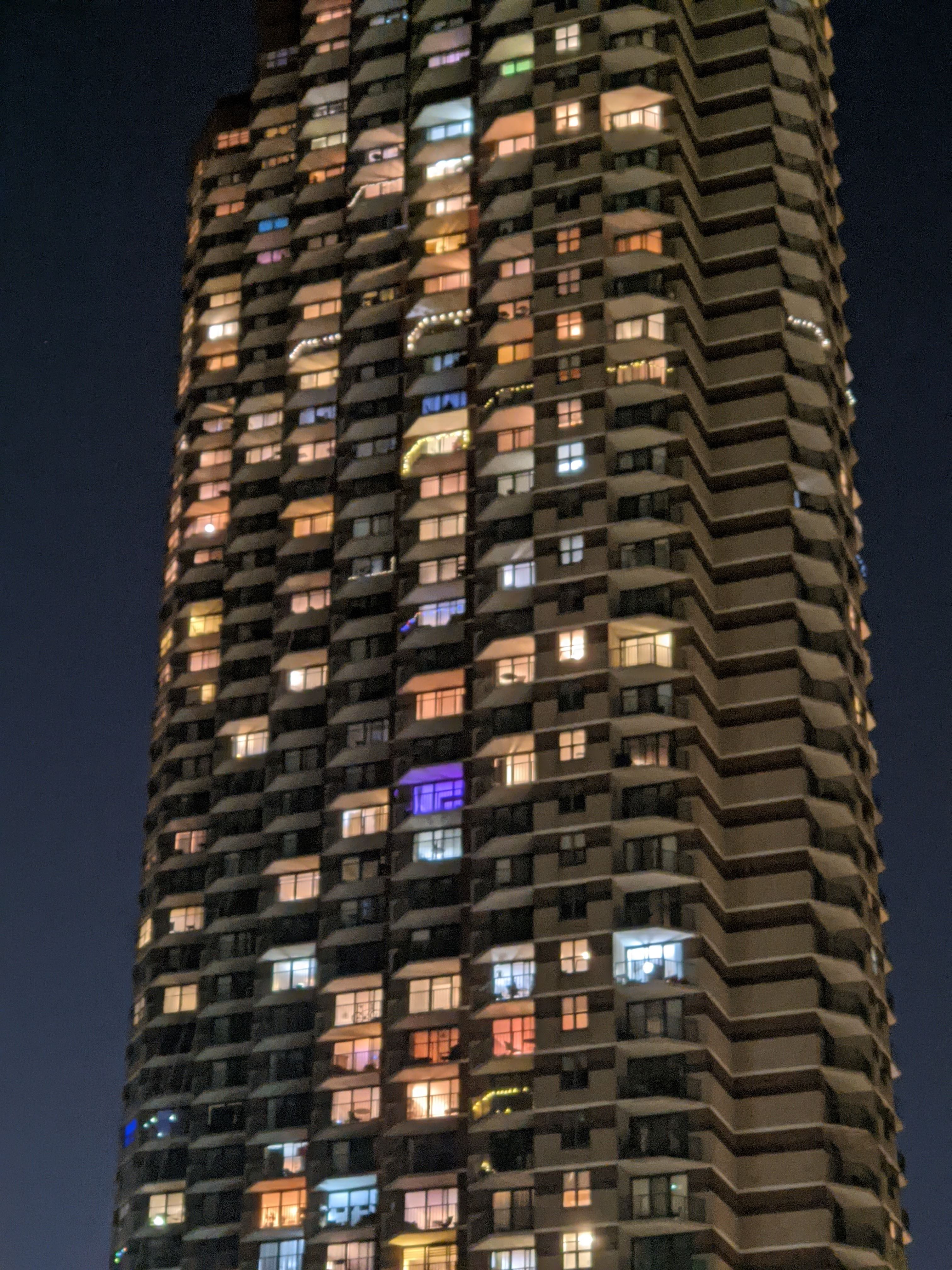 Call me creepy, but I really like looking at high rises. I love that you can look at one and see a hundred scenes in miniature: people cooking, watching TV, exercising, or working. People just doing mundane, human things.